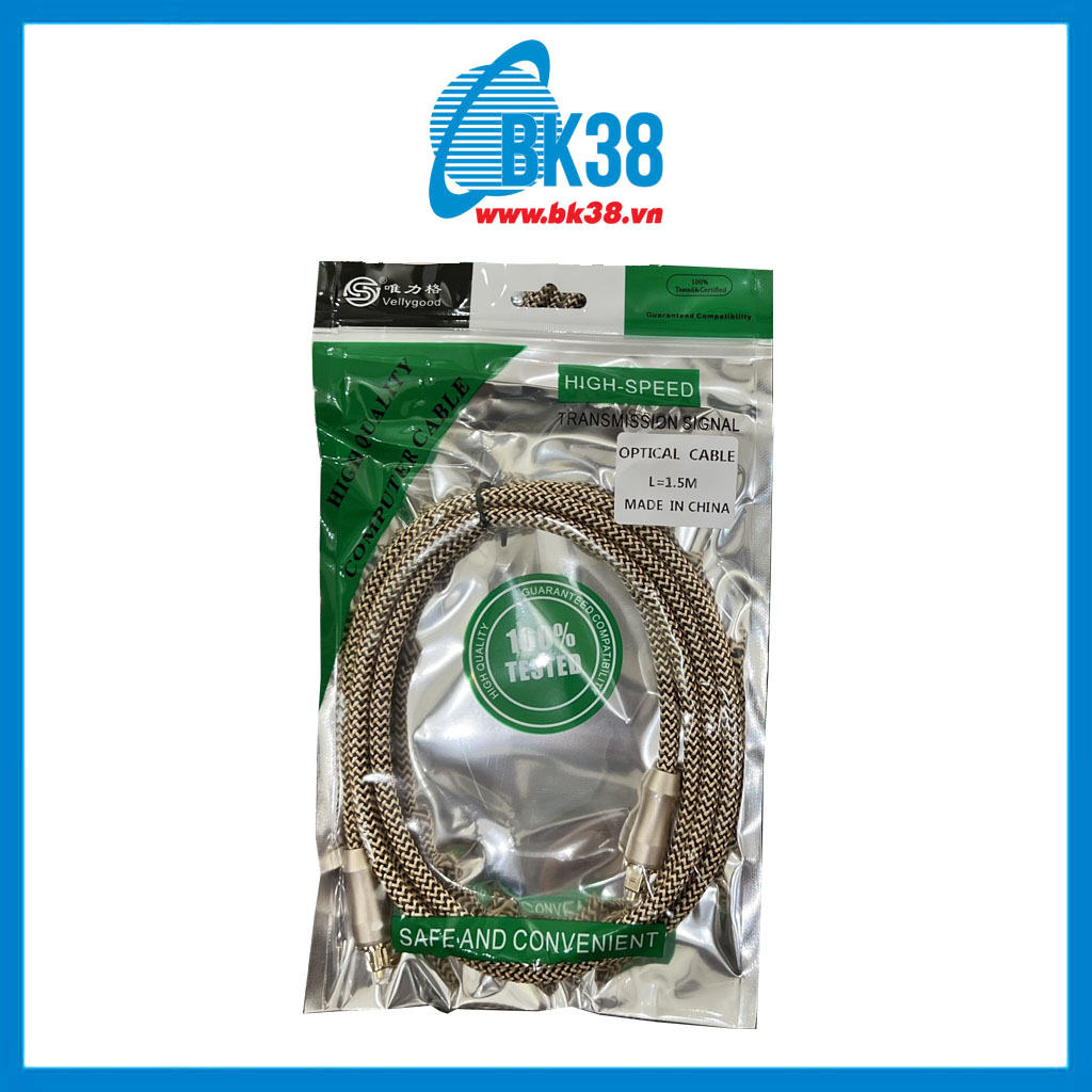Cáp Audio quang Vellygood (Gold) 1.5m được mạ kim loại vàng làm tăng khả năng tiếp xúc và tránh bị rỉ sét theo thời gian. Cáp được thiết kế có đầu chụp nhựa bảo vệ ống quang học khi không cắm thiết bị hoặc để chờ để ngăn chặn sự tác động của ánh sáng bên ngoài vào hai đầu sợi cáp, thiết bị được thiết kế nhiều lớp nhựa bọc bên ngoài và chất liệu nhựa tốt.